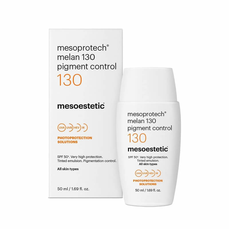 mesoprotech® melan 130 pigment control es un protector solar facial con color de protección solar muy alta y está indicado para pieles con manchas